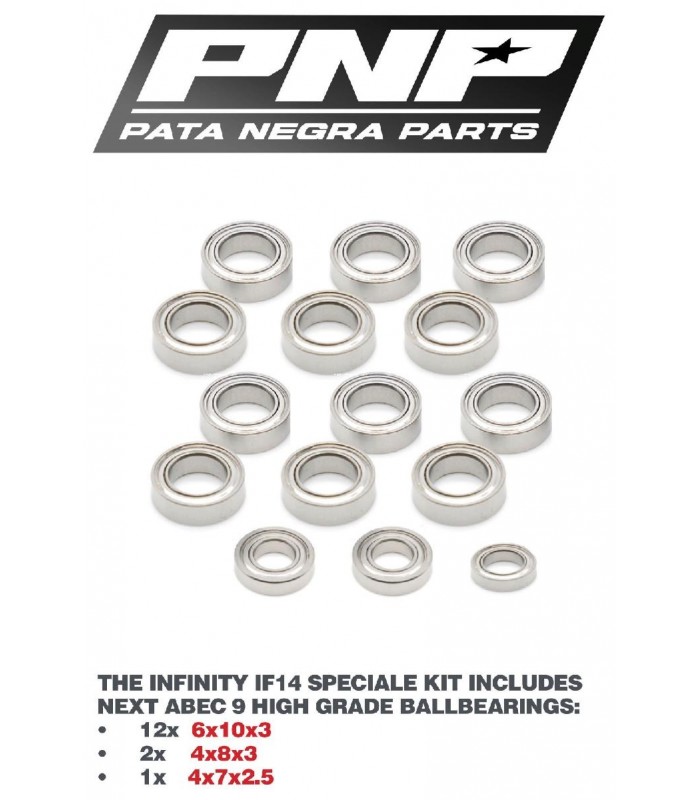This is a set of total 15 pcs of High Grade Abec 9 Ball Bearings for the transmission of the Infinity IF14 SPECIALE.